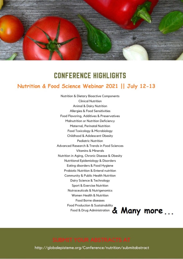 Submit your presentation at http://globalepisteme.org/Conference/nutrition/submitabstract